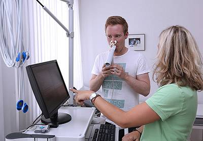 Wird bei dem Patienten eine Erkrankung der Bronchien oder der Lunge vermutet, ist eine Lungenfunktionsprüfung nötig. Mit der Lungenfunktionsprüfung wird die Wirkung einer Therapie bei Lungen- und Bronchialerkrankungen geprüft. Ferner kann der Arzt eine Arbeitsbelastung der Atemwege prüfen, Nebenwirkungen von Medikamenten beobachten und die Lungenfunktion testen.